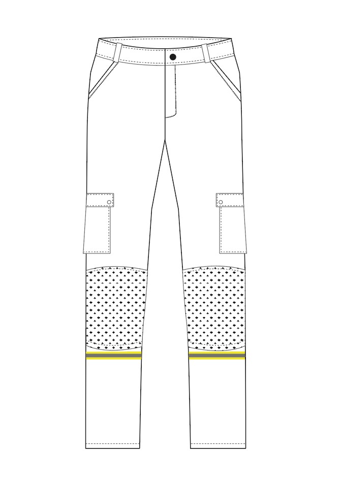 2 poches cuisse à soufflets avec rabats fermés par 2 pressions inox